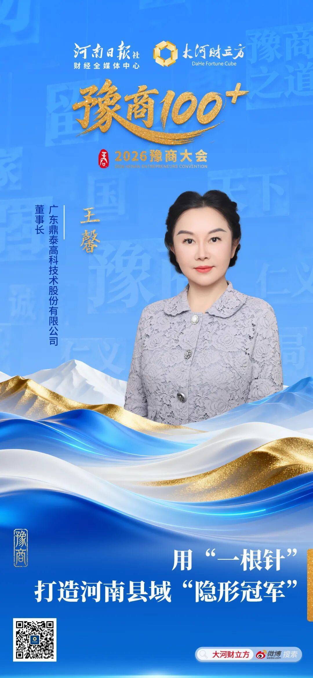 【大河财立方 记者 史冰倩】“作为一名从中原沃土走出来,深耕精密制造赛道近30年的河南人,我既是根脉相连的中原儿女,也是坚守实业、矢志追梦的奋斗者,更是豫商精神的忠实传承者与直接受益者。”广东鼎泰高科技术股份有限公司董事长王馨在2026豫商大会开幕式上的发言,道出了她与家乡割舍不断的血脉深情,也勾勒出她创业之路的精神底色。